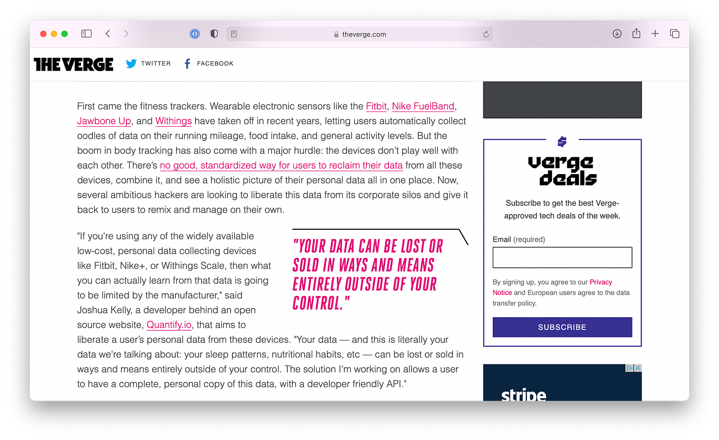 The boundary between traditional kinds of self-surveillance in personal health like sleep schedule tracking and institutional health records is going to collapse. Patient access and the ability to own your medical history will radically change the delivery of healthcare (on a long enough timeline — the only one worth working on).